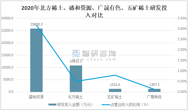 2020年北方稀土、盛和資源、廣晟有色、五礦稀土研發投入對比