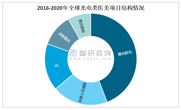 2016-2020年全球光電類醫美項目結構情況