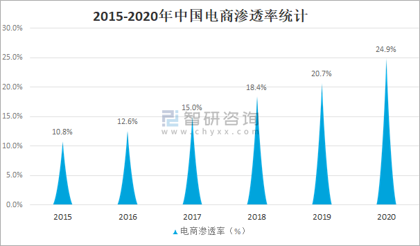2015-2020年中國(guó)電商滲透率統(tǒng)計(jì)