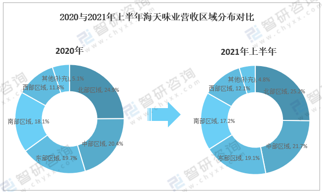 2020與2021年上半年海天味業營收區域分布對比
