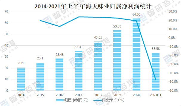 2014-2021年上半年海天味業歸屬凈利潤統計