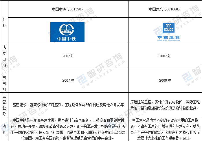 中國中鐵vs中國建筑基本情況對比