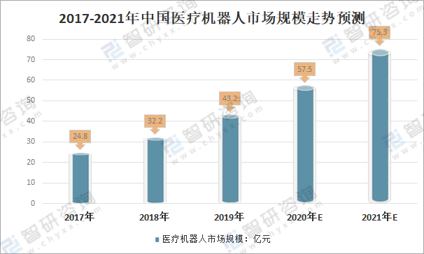2017-2021年中國醫療機器人市場規模走勢預測