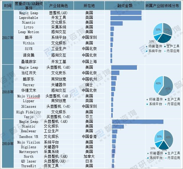 2017-2019年全球虛擬現(xiàn)實風險投資熱點事件情況