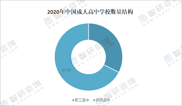 其中,2020年中國共有220所農民高中,占成人高中學校總數的67.5%,占比非常大;共有106所職工高中,占成人高中學校總數的32.5%。