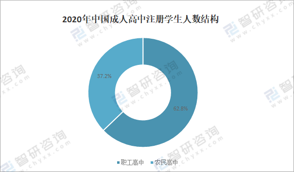 其中,2020年中國職工高中注冊學生人數為32682人,占全國成人高中注冊學生總人數的62.83%;農民高中注冊學生人數為19334人,占全國成人高中注冊學生總人數的37.17%。