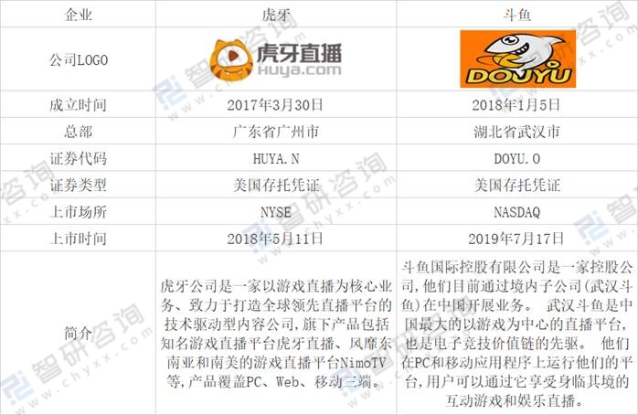 游戲直播行業(yè)在朝著多元化的方向發(fā)展,多樣的游戲直播平臺不斷崛起,并且依靠自身的特色優(yōu)勢占據(jù)市場,從最初的單純提供視頻直播服務(wù),到如今成熟的會員體系、充值模式等,內(nèi)容和用戶體驗(yàn)不斷優(yōu)化,使其受眾規(guī)模呈爆發(fā)式增長。隨著中國游戲直播市場的高速發(fā)展,涌現(xiàn)一匹如虎牙、斗魚等最具代表性的優(yōu)秀企業(yè),從成立和上市時(shí)間來看,虎牙成立時(shí)間和上市時(shí)間均早于斗魚,虎牙總部在廣東省廣州市,斗魚總部在湖北省武漢市。