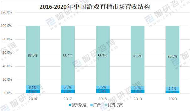 2016-2020年中國游戲直播市場營收結(jié)構(gòu)