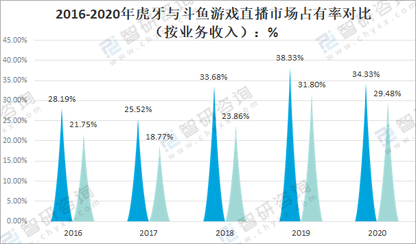 2016-2020年虎牙與斗魚游戲直播市場占有率對比(按業(yè)務(wù)收入)