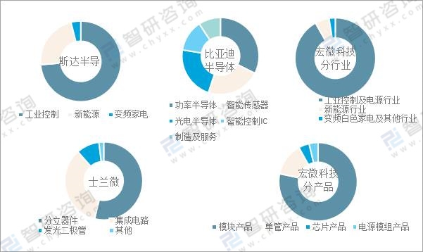 2020年斯達半導、宏微科技、士蘭微、比亞迪半導體收入結構情況