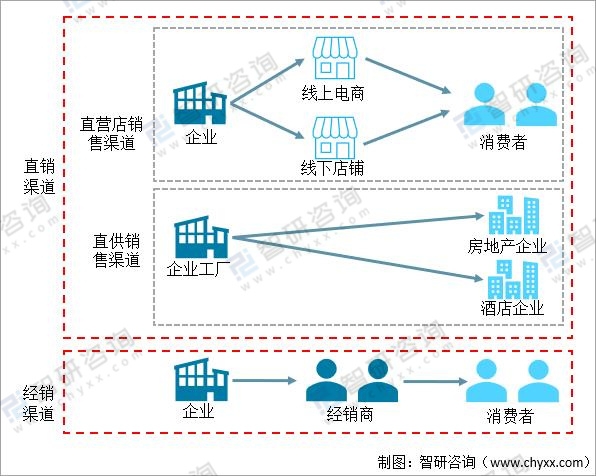 家具行業的終端客戶主要為大眾消費者,由于中國地域遼闊,人口眾多,家具行業的特殊性主要體現在銷售模式上。家具制造企業在國內銷售產品以與經銷商合作為主,開設直營店為輔。近年來隨著電商的興起,家具公司開始通過在電商平臺開設網店的形式直接向消費者銷售產品。另外,部分企業以ODM/OEM的方式向國外或國內的其他家具制造企業進行銷售,也存在向酒店、度假村等工程渠道直接銷售的方式。