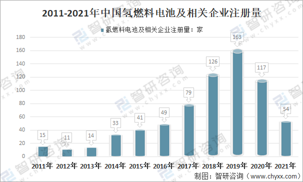 2011-2021年中國氫燃料電池及相關企業注冊量