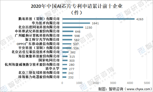 2020年中國AI芯片專利申請累計前十企業
