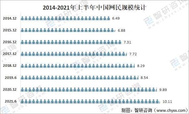 隨著中國互聯網的不斷普及,中國網民規模快速增長,截止2020年12月底中國網民規模達9.89億人,較2020年3月底增加了0.85億人,截止2021年6月底中國網民規模破十億,達10.11億人,較截止2020年12月底增加了0.22億人,龐大的網民規模為我國游戲行業的發展提供強大內生動力。