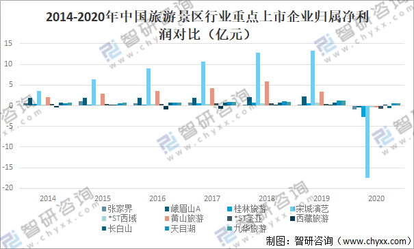 2014-2020年中國旅游景區行業重點上市企業歸屬凈利潤對比(億元)