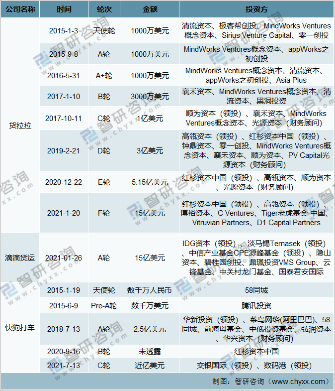 中國(guó)重點(diǎn)同城貨運(yùn)企業(yè)融資情況