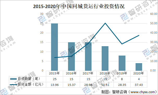 2015-2020年中國(guó)同城貨運(yùn)行業(yè)投資情況
