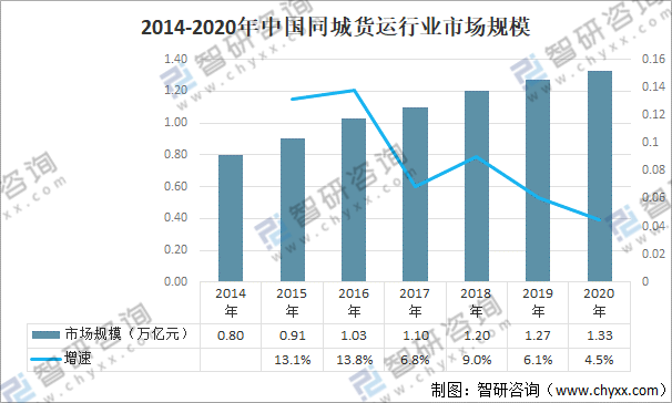 2014-2020年中國(guó)同城貨運(yùn)行業(yè)市場(chǎng)規(guī)模