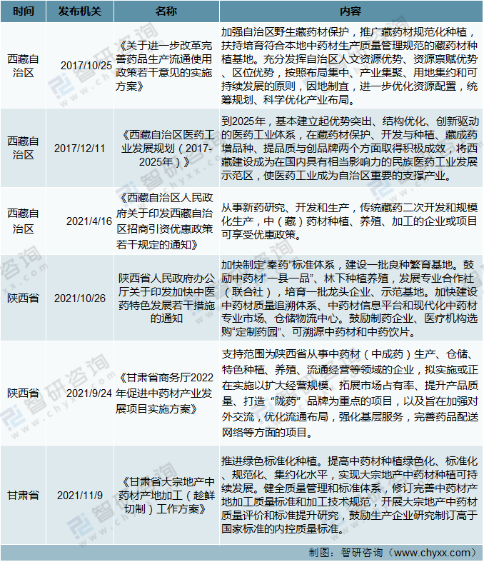 截止到2021年11月西部地區(qū)中藥產(chǎn)業(yè)相關(guān)政策分析(三)