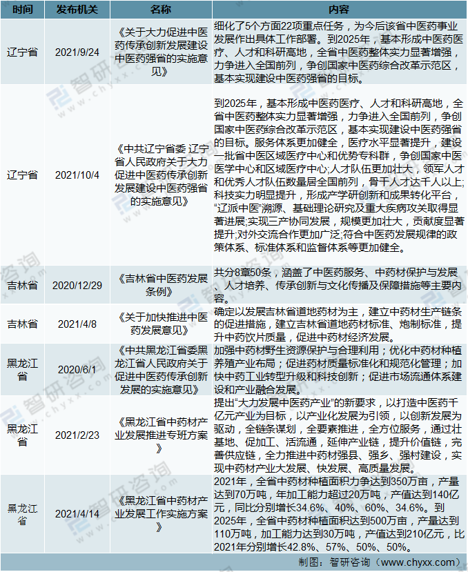 截止到2021年11月東北地區(qū)中藥產(chǎn)業(yè)相關(guān)政策分析(一)