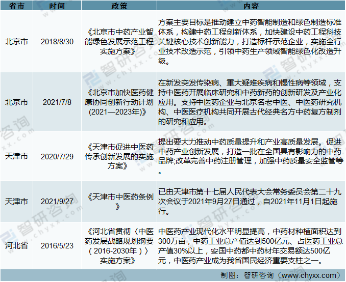 截止到2021年11月華北地區(qū)中藥產(chǎn)業(yè)相關(guān)政策分析(二)