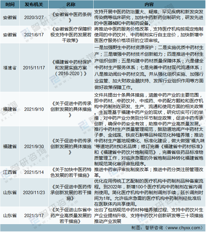截止到2021年11月華東地區(qū)中藥產(chǎn)業(yè)相關(guān)政策分析(二)