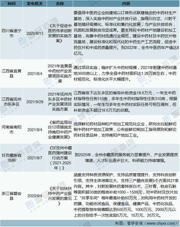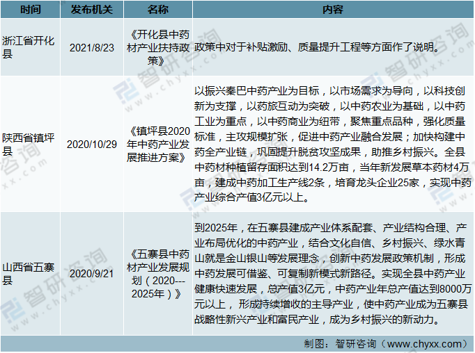 截止至2021年11月我國(guó)優(yōu)勢(shì)市縣中藥產(chǎn)業(yè)相關(guān)政策分析(三)