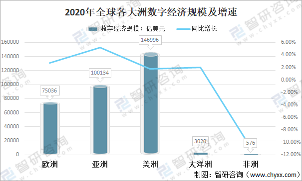 2020年全球各大洲數字經濟規模及增速