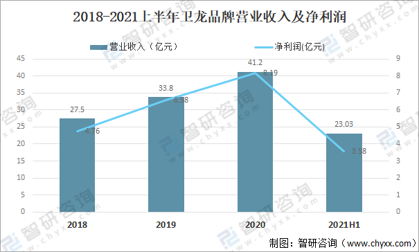2018-2021上半年衛(wèi)龍品牌營業(yè)收入及凈利潤