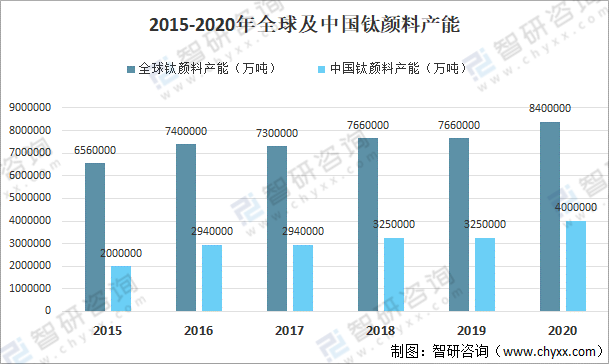 2015-2020年全球及中國鈦顏料產能