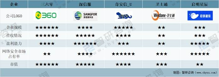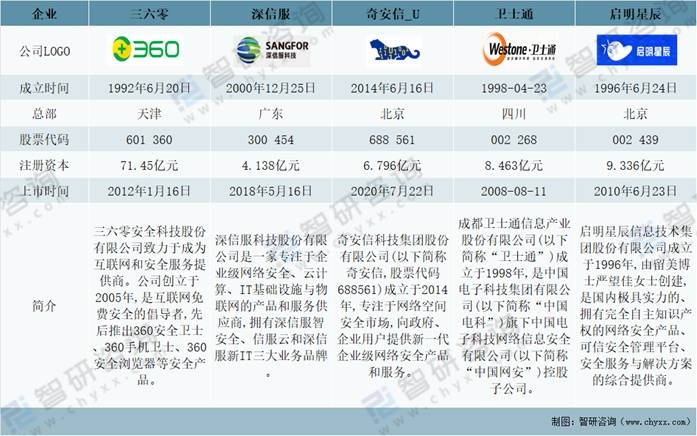 三六零、深信服、奇安信、衛士通、啟明星辰基本情況對比
