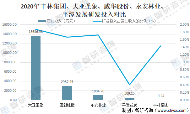 2020年豐林集團、大亞圣象、威華股份、永安林業、平潭發展研發投入對比