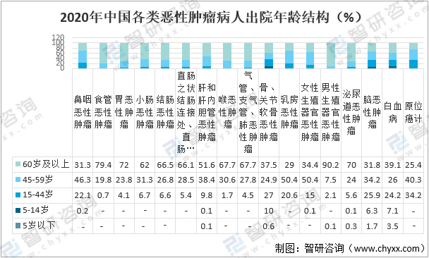 2020年中國腫瘤病人出院年齡結構分析:60歲及以上惡性腫瘤病人出院人數占56.20%[圖]