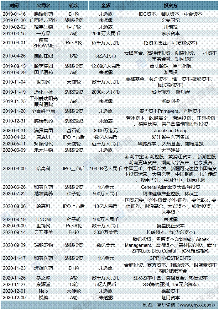 2017-2020年中國保健品行業投融資事件(一)