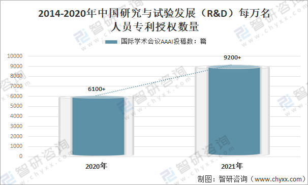 從國際學術(shù)會議AAAI投稿數(shù)來看,2020年中國國際學術(shù)會議AAAI投稿數(shù)超過9200篇,較2019年國際學術(shù)會議AAAI投稿數(shù)6100篇增長3100篇。