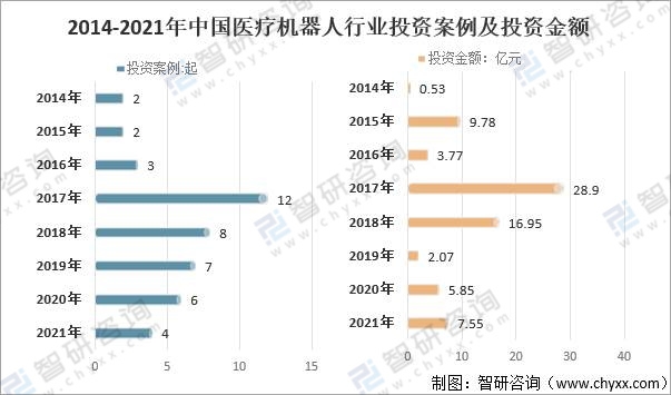2014-2021年中國醫(yī)療機器人行業(yè)投資案例及投資金額