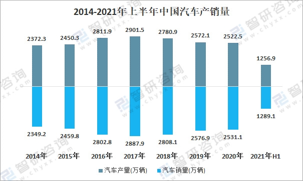 2014-2021年上半年中國汽車產銷量