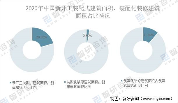 2020年中國新開工裝配式建筑面積、裝配化裝修建筑面積占比情況