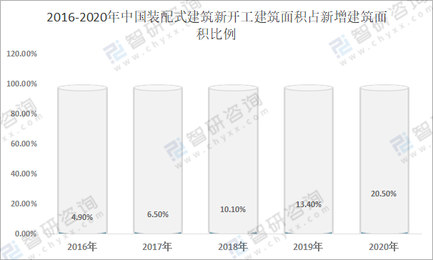 2016-2020年中國裝配式建筑新開工建筑面積占新增建筑面積比例