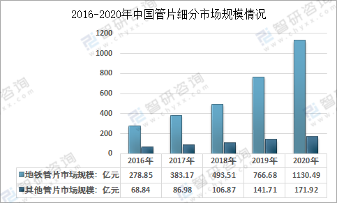 2016-2020年中國管片細分市場規模情況