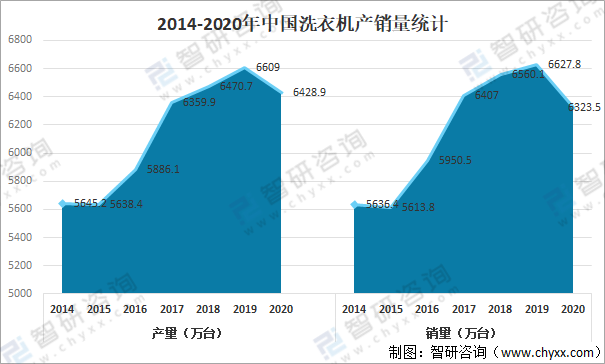 2014-2020年中國洗衣機產銷量統(tǒng)計