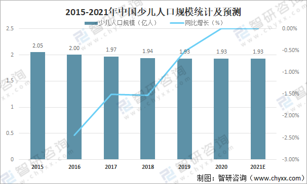 2015-2021年中國少兒人口規模統計及預測