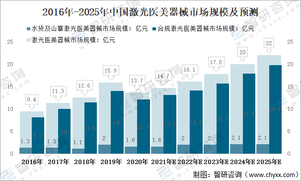 2016年-2025年中國激光醫(yī)美器械市場規(guī)模情況