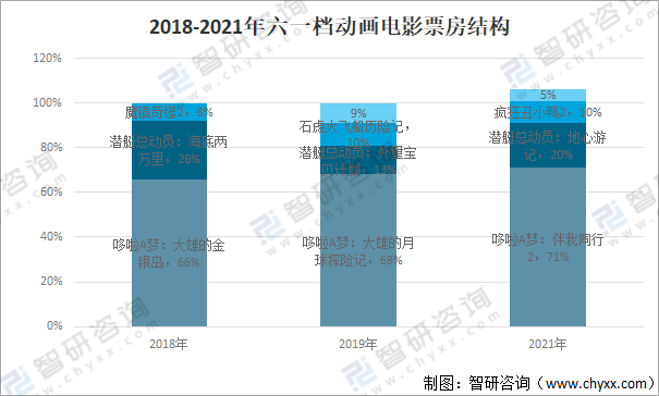 2018-2021年六一檔動畫電影票房結構