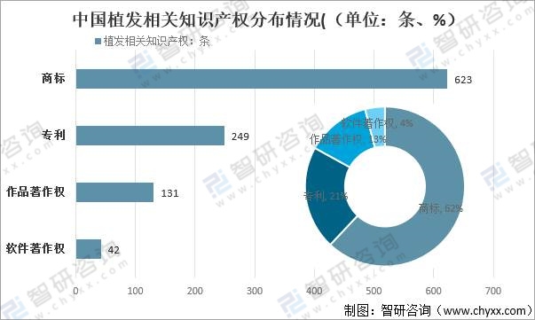 中國植發相關知識產權分布情況((單位:條、%)