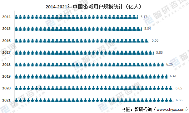 2014-2021年中國游戲用戶規模統計