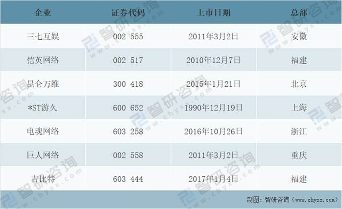 中國移動游戲滬深上市公司主要有三七互娛、愷英網絡、昆侖萬維、*ST游久、電魂網絡、巨人網絡、吉比特等,從上市時間來看,*ST游久上市時間要早于三七互娛、愷英網絡、昆侖萬維、游久游戲、電魂網絡、巨人網絡和吉比特。