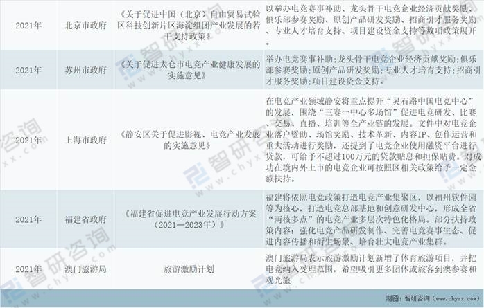 近年來出臺與與電子競技相關的地方支持政策