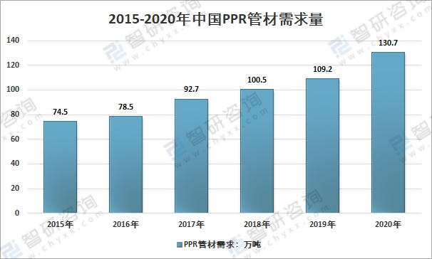2020年我國PPR管材行業需求量130.7萬噸,需求市場規模211.73億元。近幾年我國PPR管材行業需求情況如下圖所示: