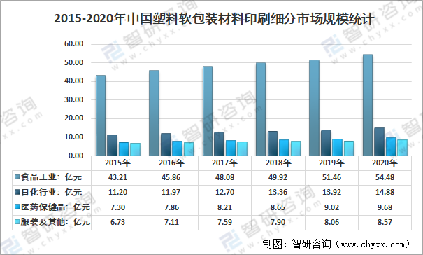2015-2020年我國塑料軟包裝材料印刷細(xì)分市場規(guī)模統(tǒng)計(jì)